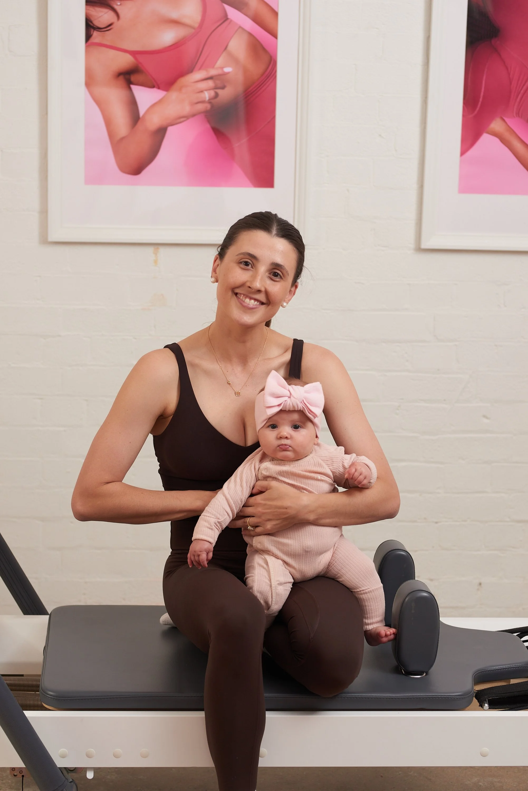 Leaving so inspired by her results and confidence in movement, she began her teaching journey soon after. Becoming both Reformer and Apparatus trained, she is devoted to helping other mums experience the same positivity and confidence in movement she experienced.